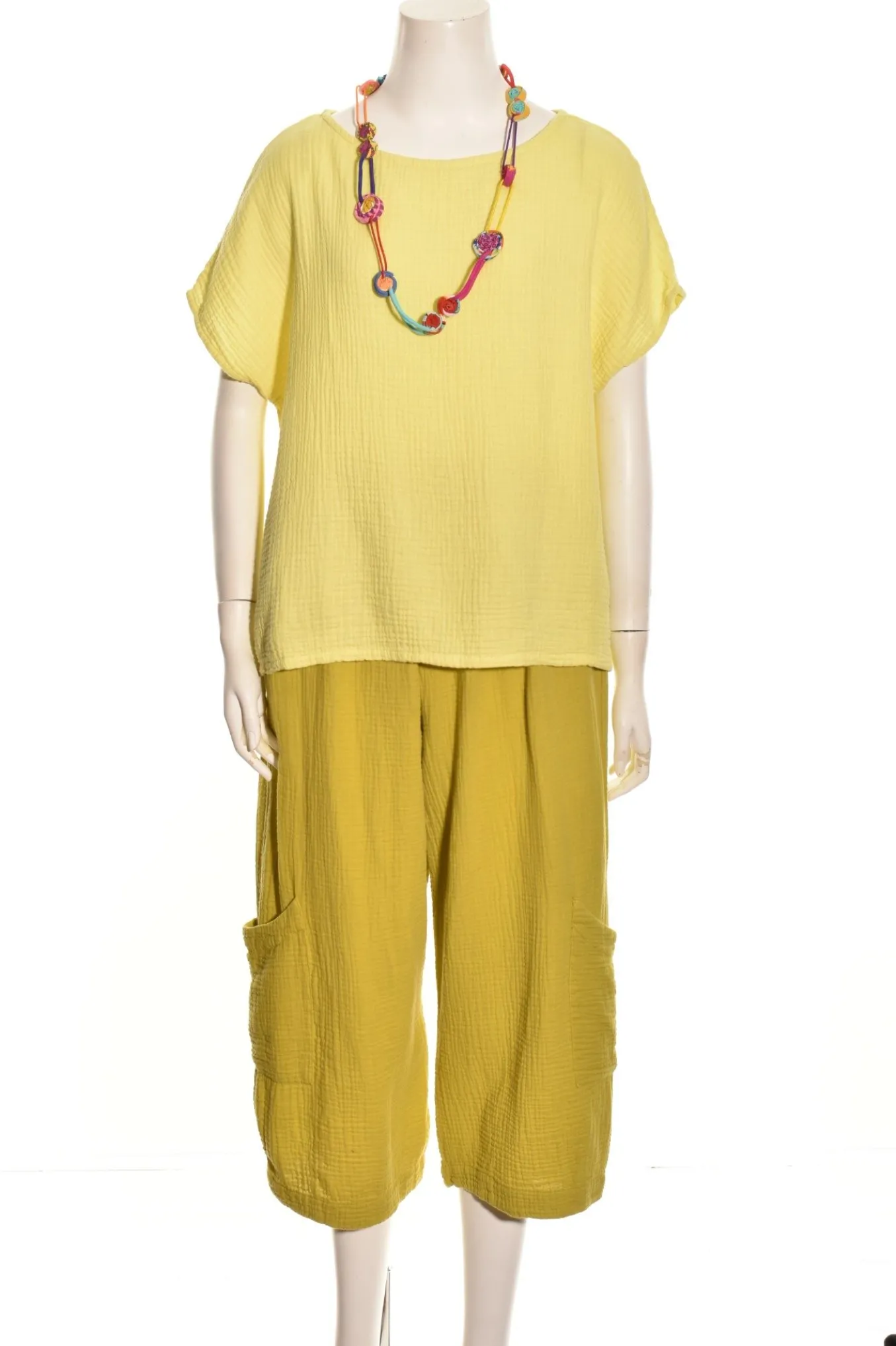 The Bess Shirt By Bryn Walker Is Elegant In It’s Simplicity. Made Up In A 100% Cotton Gauze, This Boxy Loose Fitting Top Has Cap Sleeves And A Bateau Neckline. The Straight Hemline Hits About Mid-Hip On Most. A Great Addition And Building Block For Your Wardrobe. She Pairs Perfectly With Bryn Walkers Crop Pant, Style #76722.