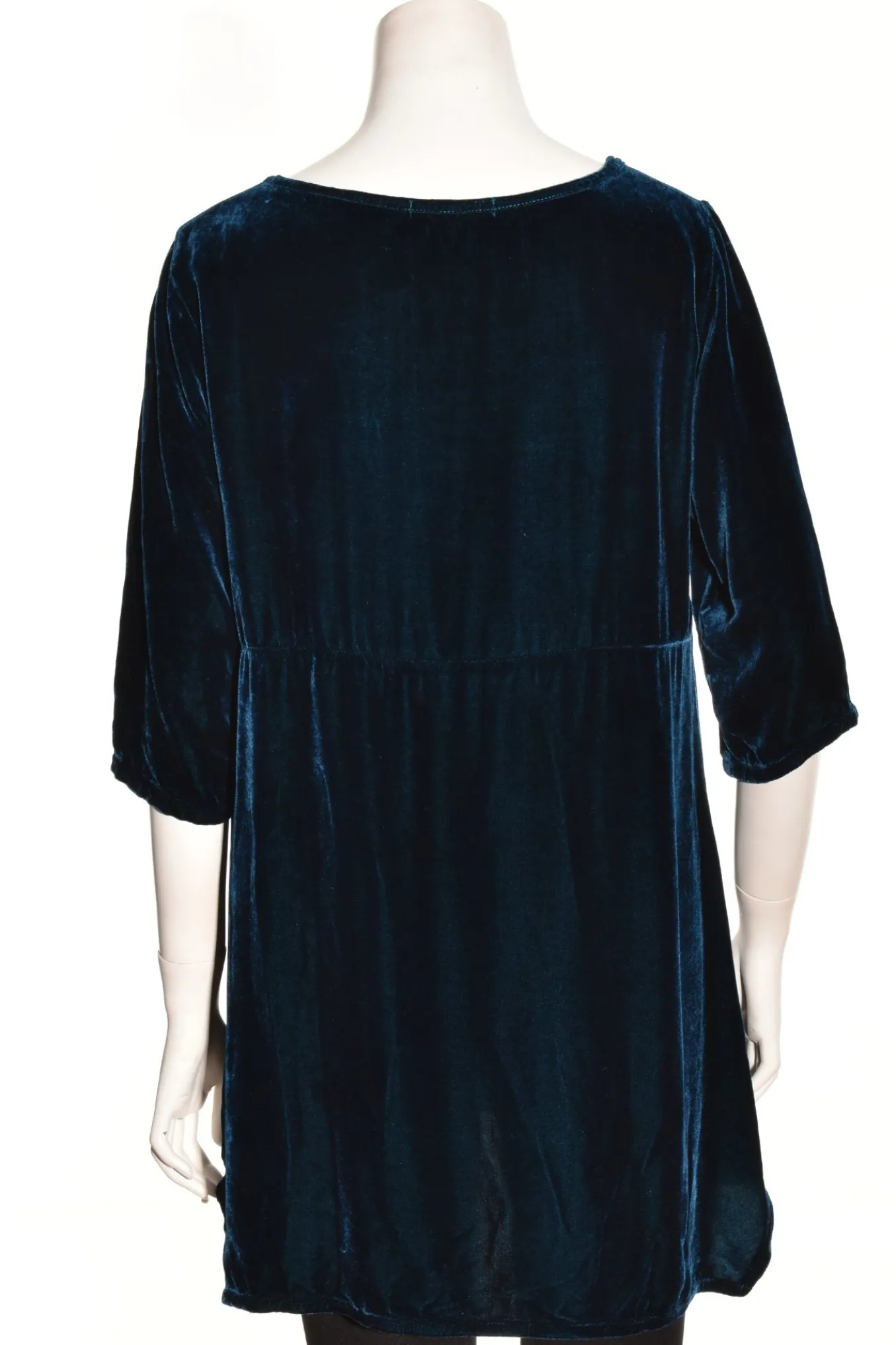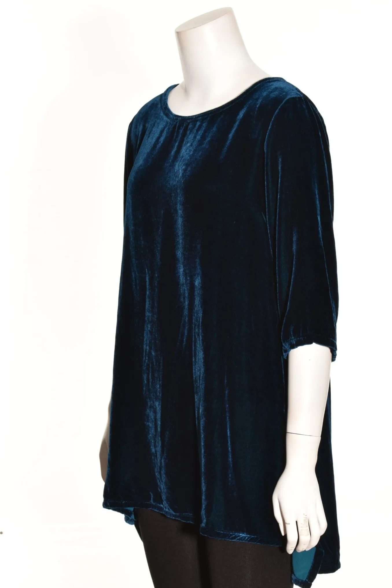 The Alluring Drape Of Velvet In This Loose Tunic With 3/4 Length Sleeves And A Loose Silhouette With A Curved Hemline That’s A Bit Longer In The Back. Perfect With Leggings.