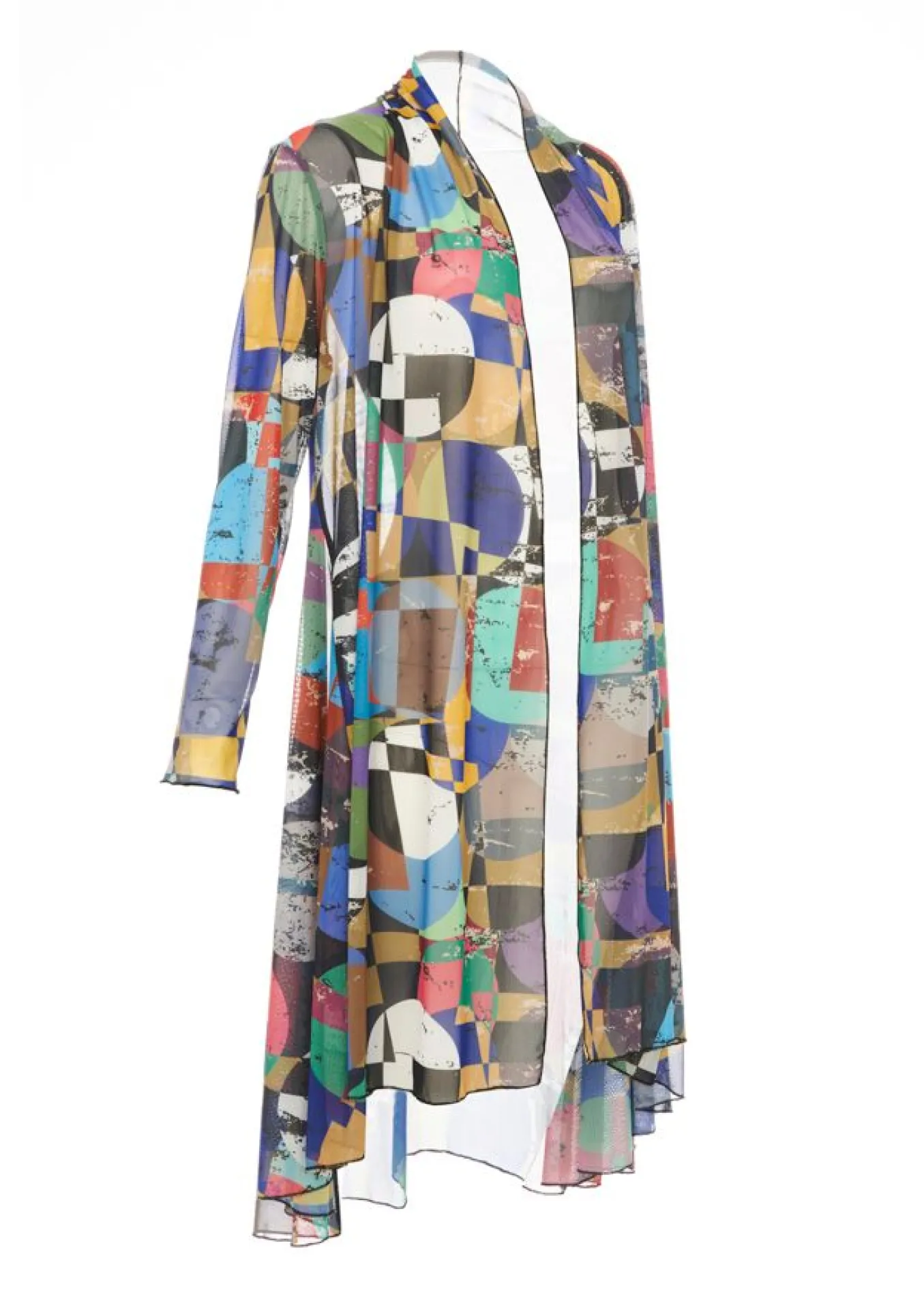 The Molly Cardigan By Kozan Has A Free Flowing Drape. This Seasonless Travel Friendly Sheer Mesh Cardigan Falls Mid Calf On Most, With An Open Front And Full Length Sleeves. Triangular Insets At The Sides Lend A Graceful Sweeping Motion To The Hemline. Made Up In A Vibrant Modern Print, Perfect For Pairing With Your Existing Wardrobe.