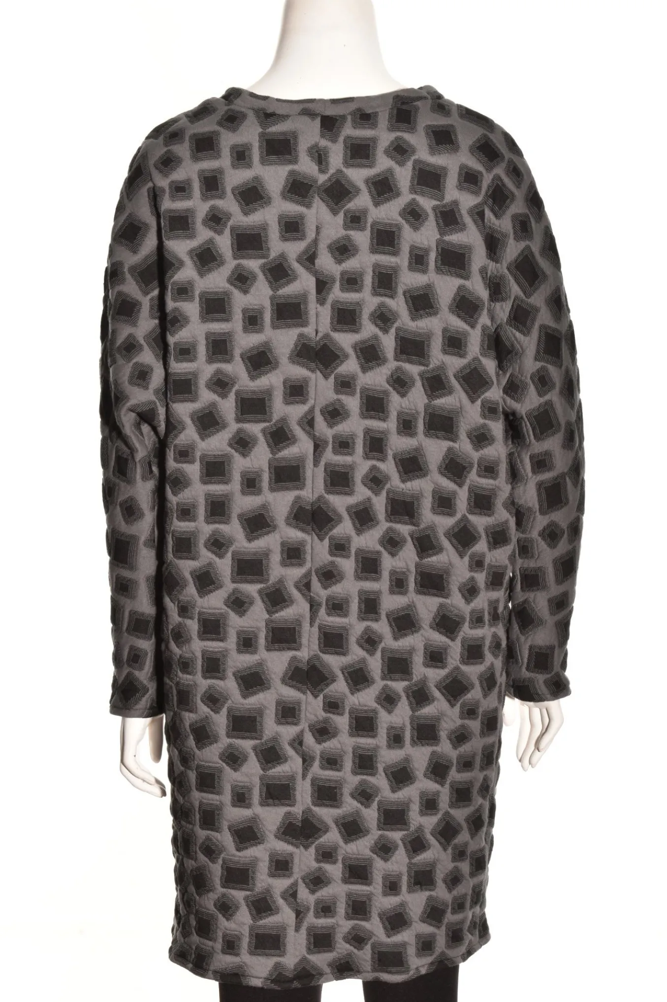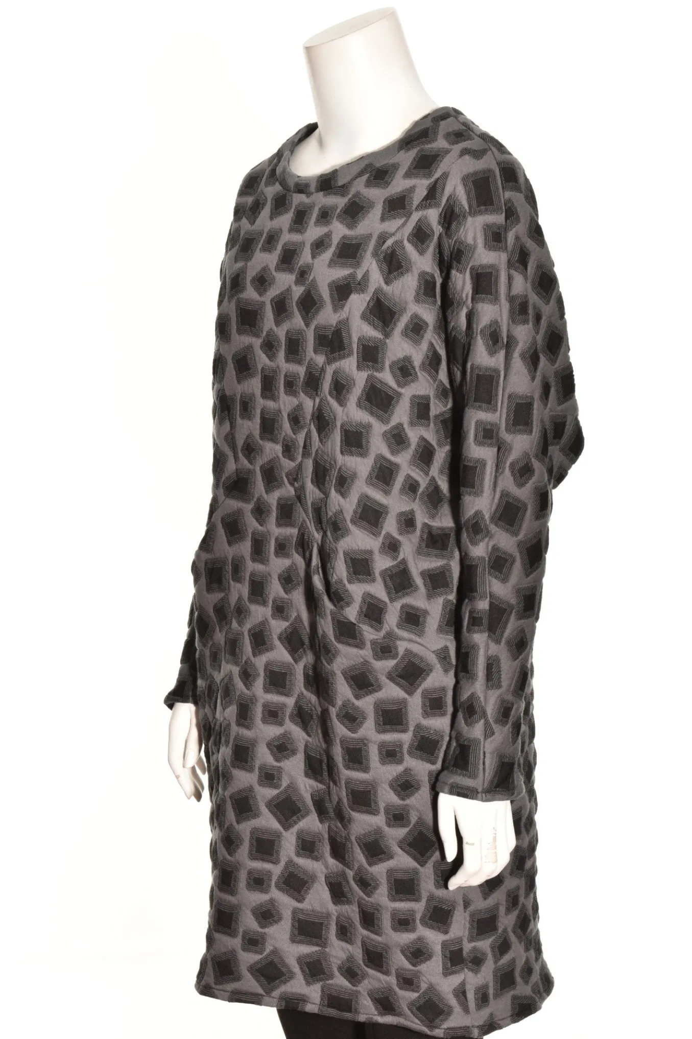 This Contemporary Tunic By Niche In A Square Knit Textured Fabric Has A Flattering Easy To Wear Cocoon Shaped Silhouette. This Longer Length Tunic Has A Scoop Neck Line, Full Length Sleeves And Two Front Pockets That Add To The Chic Design, Pair With Black Leggings For A Comfortable Dressed Tunic Look.