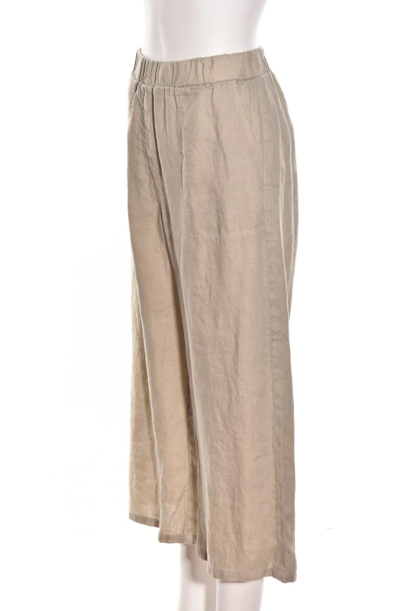 The Easy Crop Pant In Hanky Linen Is An Effortless And Versatile Pull-On Pant. Featuring Full Elastic Waistband, Slash Pockets Ans A Faux Fly Front. The Fit Is Relaxed With A Crop Length Inside Leg. Inside Leg Measures 22′.