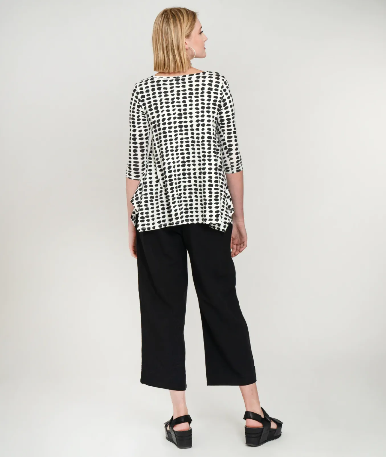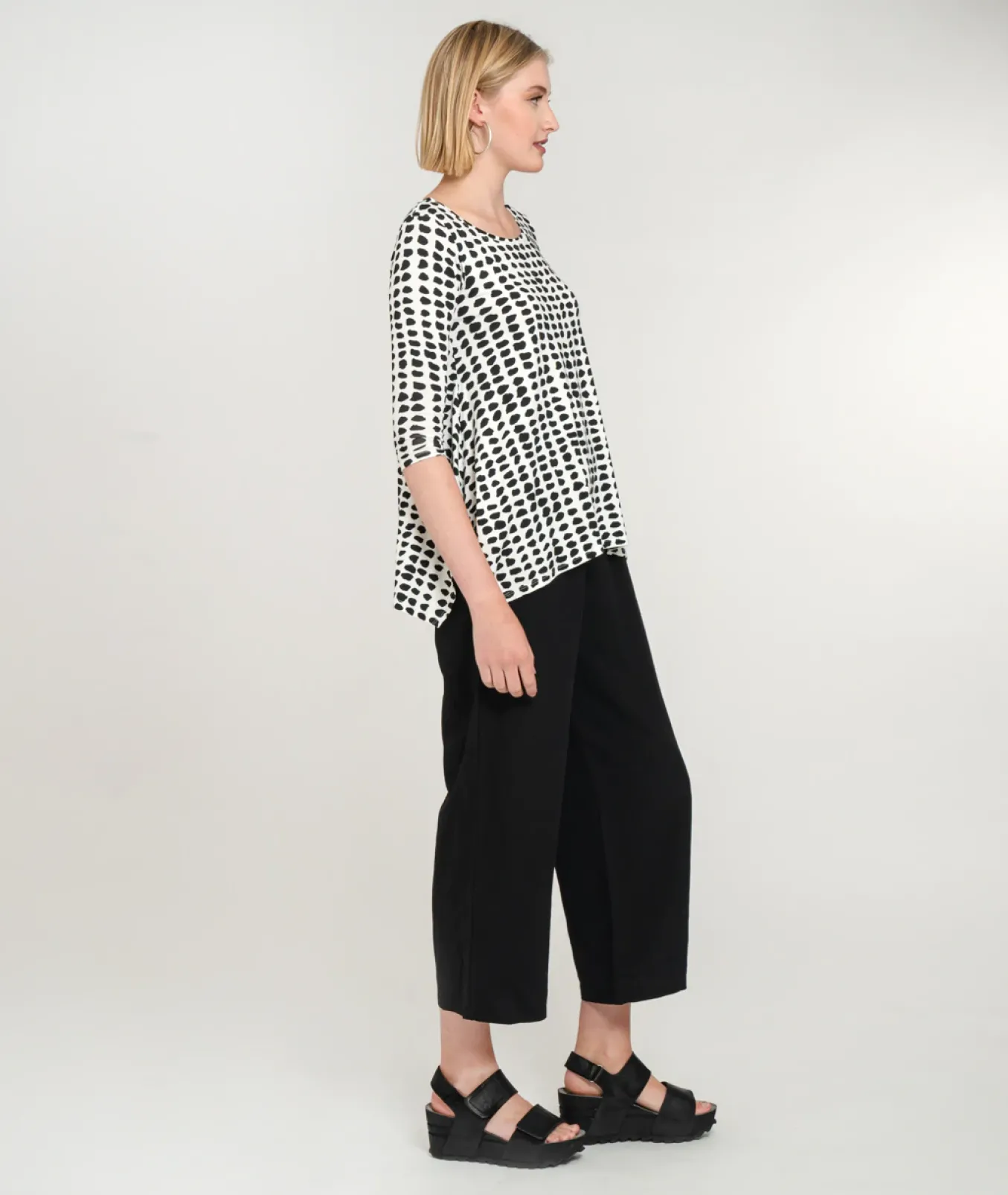 Our Popular Take On The Easy Tee-Shirt. Round Neckline, 3/4 Length Sleeves And A Swingy A-Line Silhouette In Drapy Jersey Clipped Sides Create A Draped Double Point Hem.