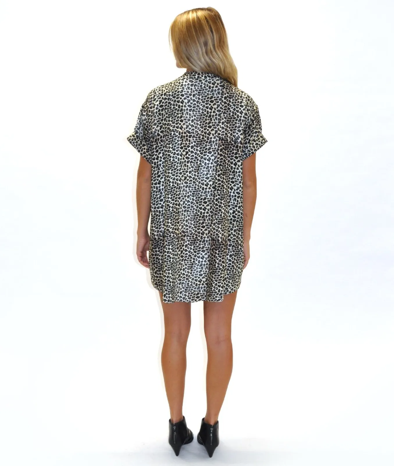 Short Sleeve Dress With Round Shirt Hem, Rolled Sleeve, And V-Neck With Banded Half Collar. Pockets In The Side Seam And Small Front Center Pleat. Slightly Longer In Back.