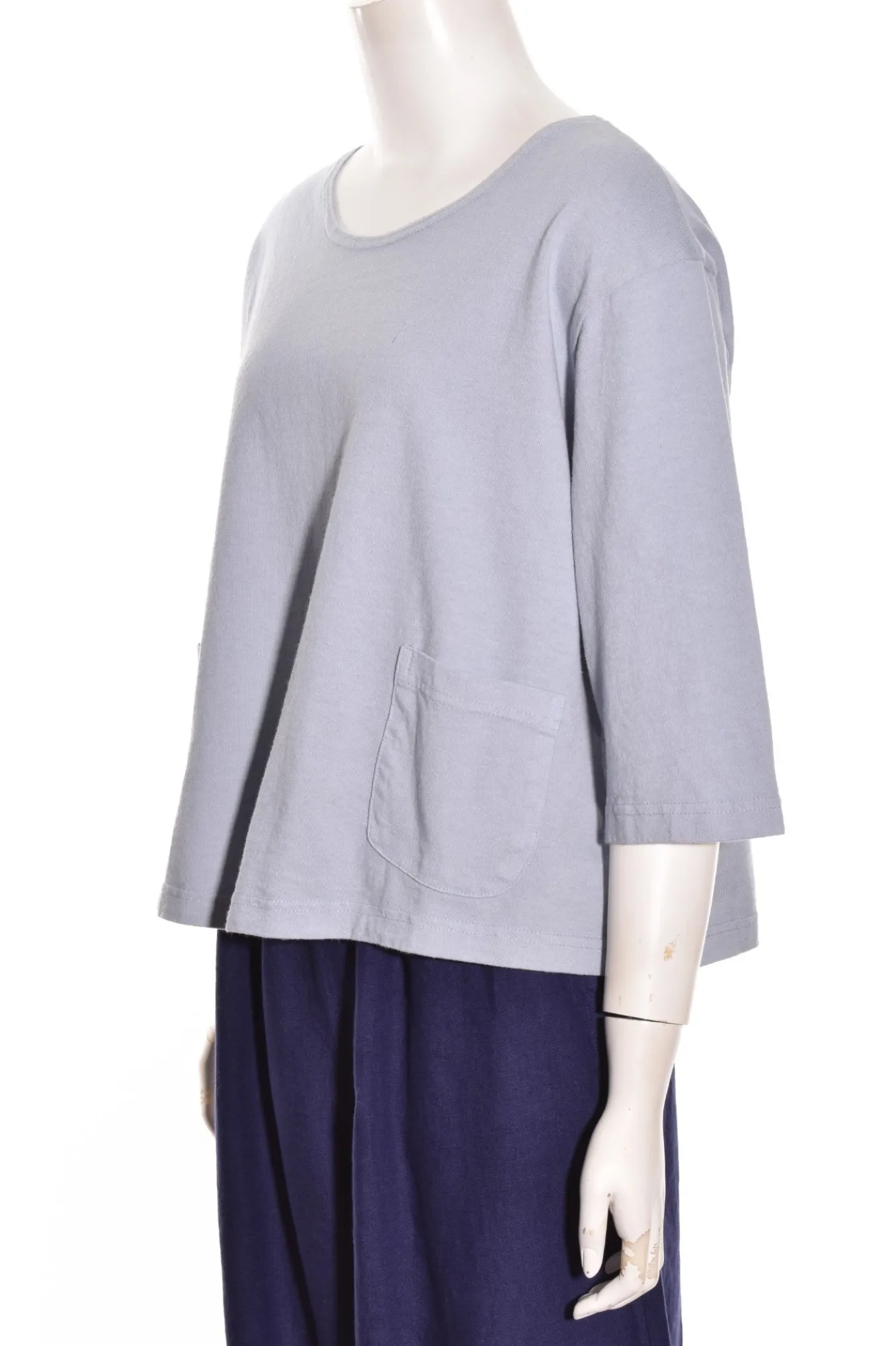 The 3/4 Length Sleeve Boxy Shirt By Pacificotton Has A Slightly Cropped, Relaxed Silouhette. Other Details Include A Round Neckline, Dropped Shoulders With 3/4 Length Sleeves And Two Front Patch Pockets.