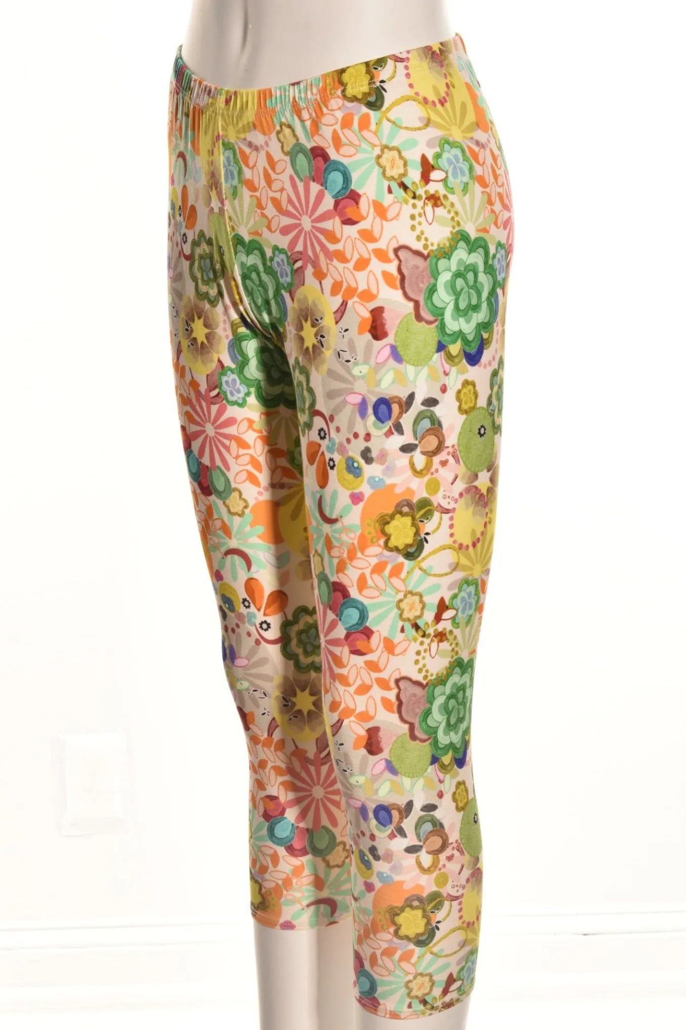 Fun, Printed Capri Leggings With A Full Elastic Waist Band In Jersey Knit.